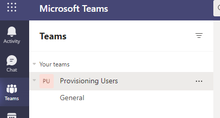 - Create a team in Teams; here I have created a team called Provisioning Users: