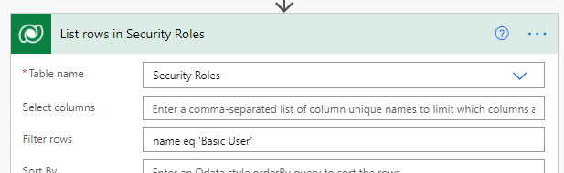 The key part of the security role is getting the ‘odata.id’ from it to relate to the user. This is the full API URL which will be used in the relate rows.