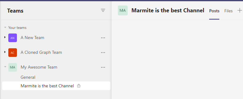 - Clone a current Team (Graph)– this is a really useful method, as it allows non IT people to create template Teams, which can then be cloned via a Flow/App. Downside, private channels cannot be cloned.