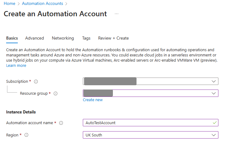 The subscription, resource Group and automation account will be known from where the automation account was created. In the below, I’m passing in a parameter, and waiting for the job to return an output.